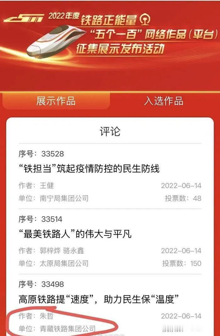 第一篇作者朱哲,青藏铁路集团公司宣传部门职工,2022年度铁路正能量网络作品评选获奖者。