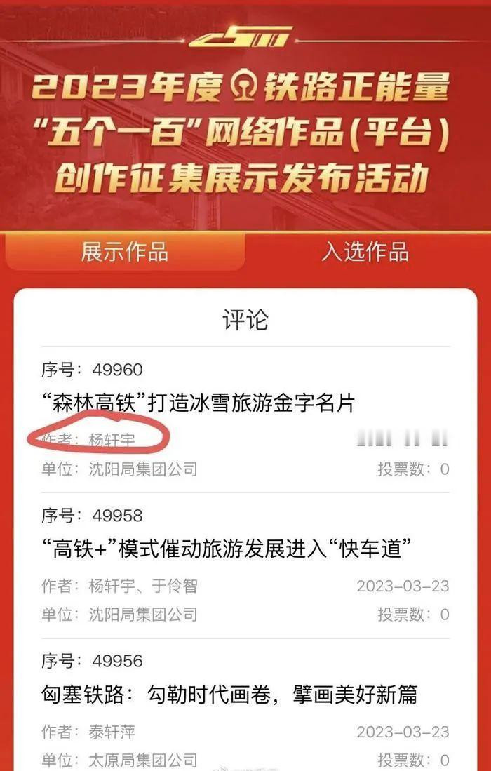 第二篇作者杨轩宇,中铁沈阳局集团公司宣传部门职工,2023年度铁路正能量网络作品评选获奖者。